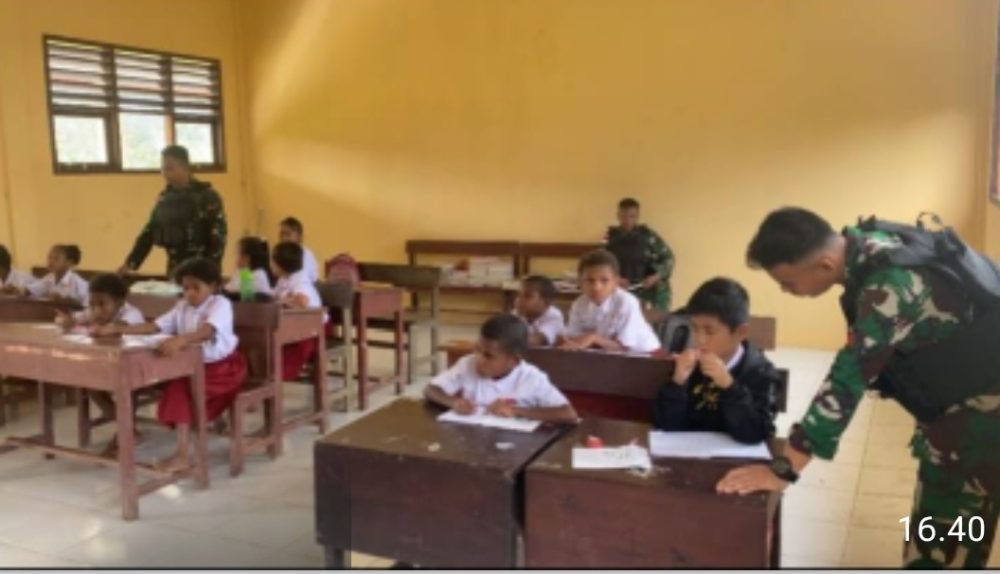 Dukung Program Pemerintah dan Cerdaskan Anak-Anak Papua, Satgas Pamtas Kewilayahan Yonif 410/ALG Menjadi Gadik di SD Inpres 119 Tahota