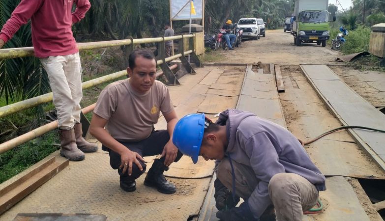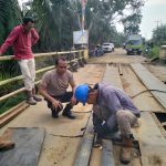 POLSEK SIMPANG KANAN BERSAMA PEMERINTAH KECAMATAN DAN MASYARAKAT LAKUKAN PERBAIKAN JEMBATAN BAGAN NIBUNG