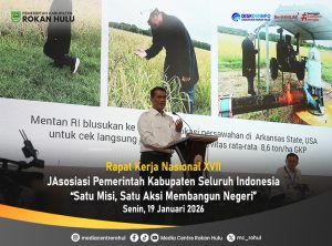 Bupati Rokan Hulu (Rohul), Anton, ST, MM, menghadiri langsung Rapat Kerja Nasional (Rakernas) Asosiasi Pemerintah Kabupaten Seluruh Indonesia (APKASI) ke-XVII tahun 2026. Acara yang mempertemukan para kepala daerah se-Indonesia ini digelar di Grand Lotus Ballroom Hotel Aston Batam, Kepulauan Riau, Senin (19/1/2026).
